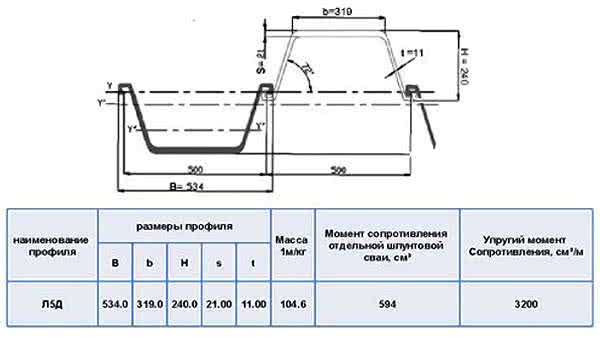 - отличные прочностные характеристики шпунта Ларсена Л5Д при сравнительно небольшой массе;