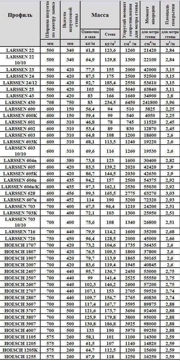 Рекомендуем ознакомиться с основными параметрами нескольких популярных марок шпунтов Hoesch.