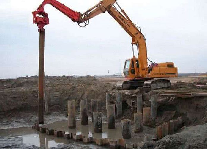 • вибропогружение с помощью специальных установок. Быстрый и эффективный метод, подходит для большинства грунтов. Имеет некоторые ограничения к применению в черте города из-за вибраций, которые могут повредить расположенным рядом постройкам;