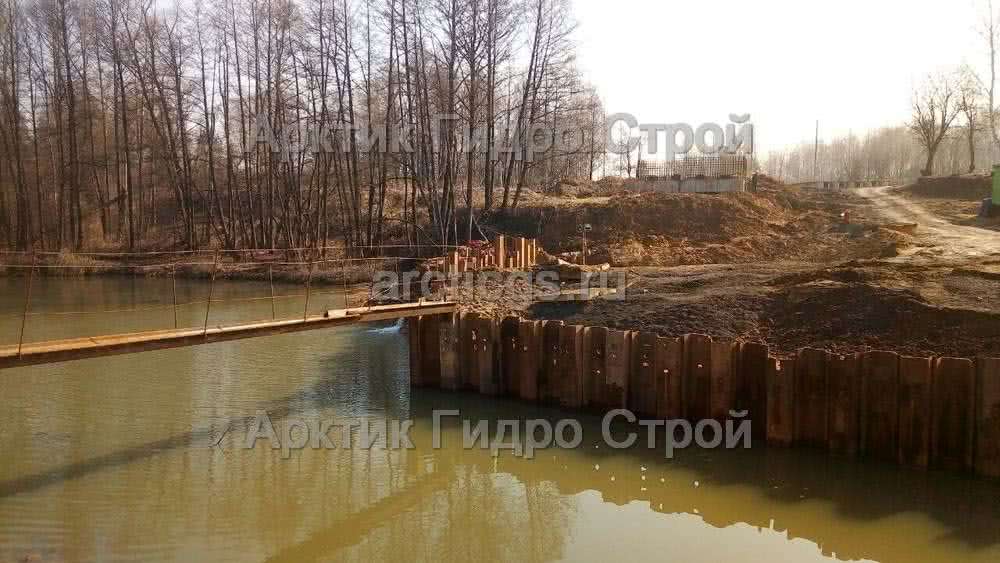 Шпунтовое ограждение котлована из шпунта Ларсена с распорами, выполненное специалистами «АрктикГидроСтрой»